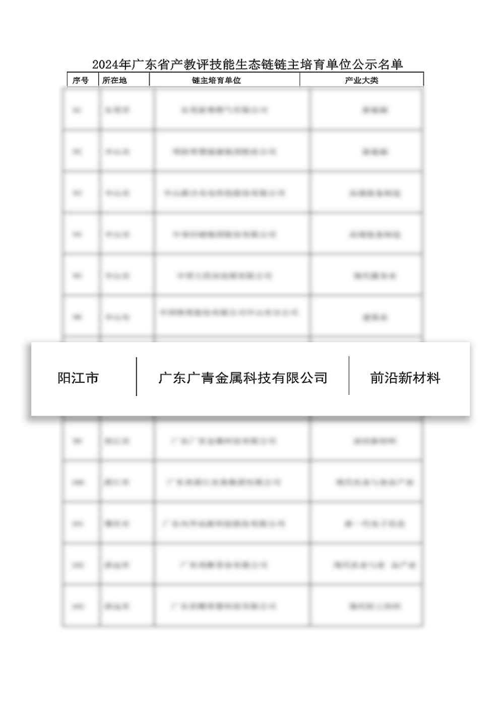 近日,广东省人力资源和社会保障厅发布《关于2024年广东省产教评技能生态链链主培育单位评审入选名单的公示》,广东广青金属科技有限公司入选成为2024年广东省产教评技能生态链链主培育单位之一,也是阳江市首家入选广东省产教评技能生态链链主培育单位。