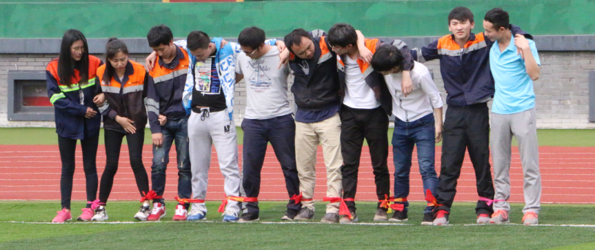 运动会分团队建设、游戏时间、颁奖3个阶段进行。大学生被分成5支队伍,在规定的时间内完成自己的队伍建设,队徽、队名(太阳队、牛气冲天队、ATM队、asiagame川云队、Keeper队)、队形(静态)、口号等,并一一展示,赢得了阵阵掌声。